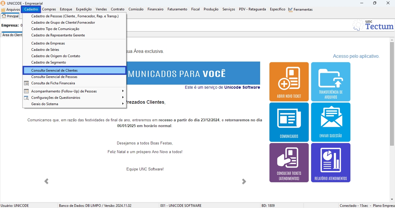 1. Clique em Cadastro e selecione a opção Consulta Gerencial de Clientes;