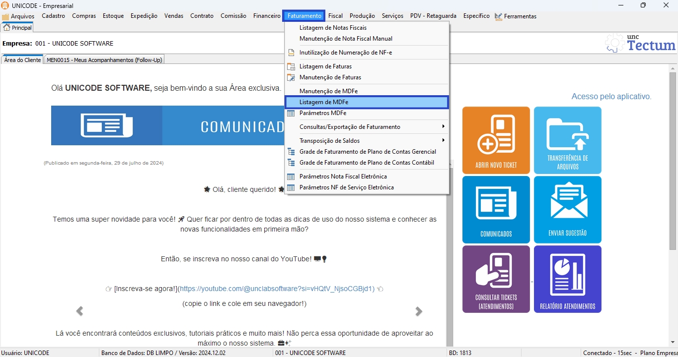 1. Clique em “Faturamento “e em “Listagem de MDFe”;