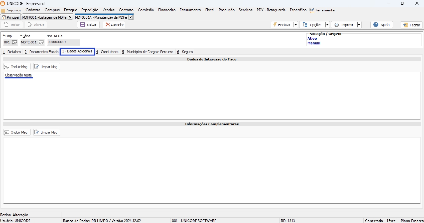 5. Na aba 3 – Dados Adicionais informe uma mensagem, caso necessário;