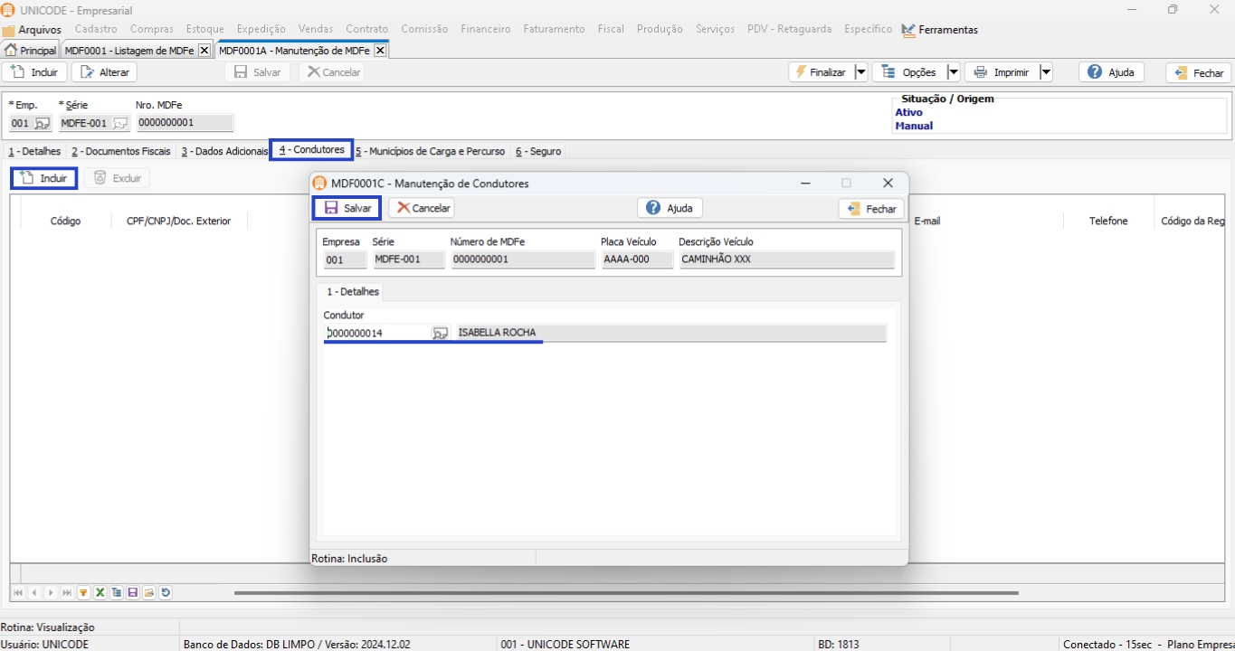 6. Na aba 4 – Condutores, identifique quem será o condutor da carga;