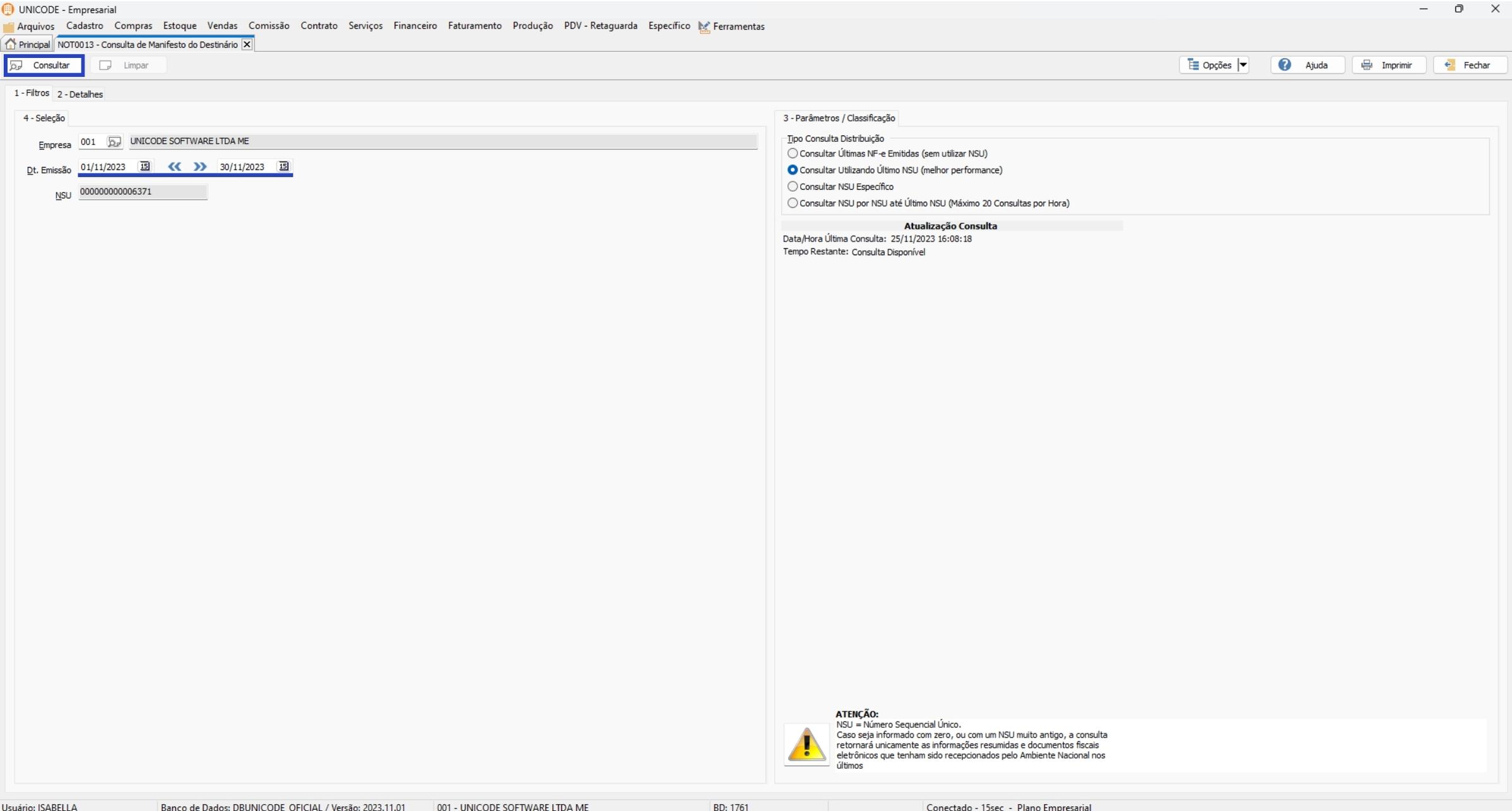2. Selecione a empresa e o período desejado, e clique em Consultar”;