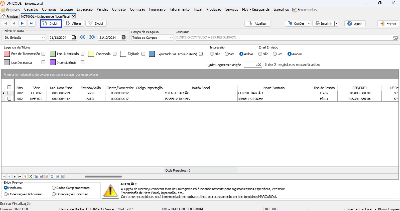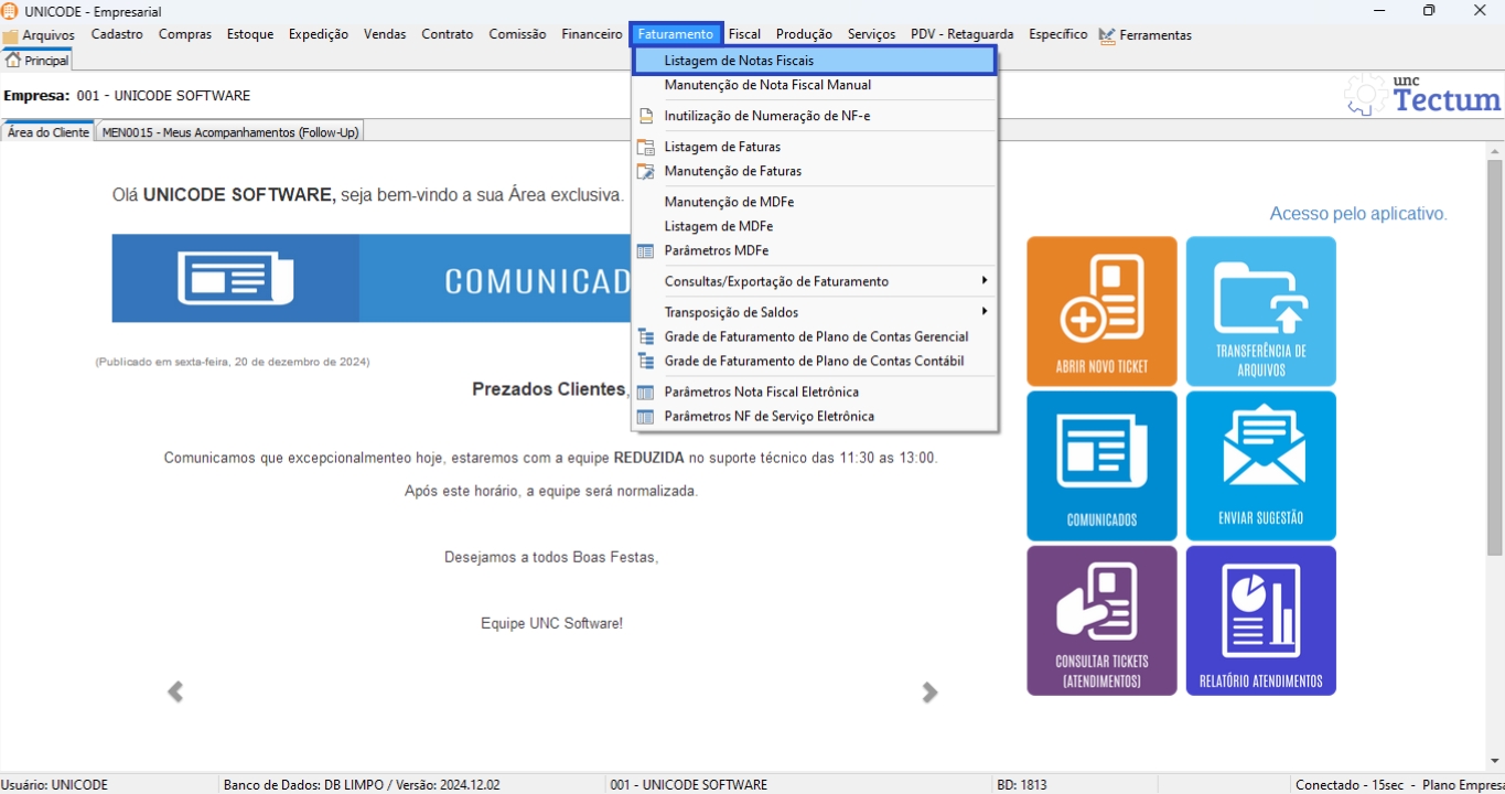 1. Clique em “Faturamento “e em “Listagem de Listagem de Notas Fiscais”;