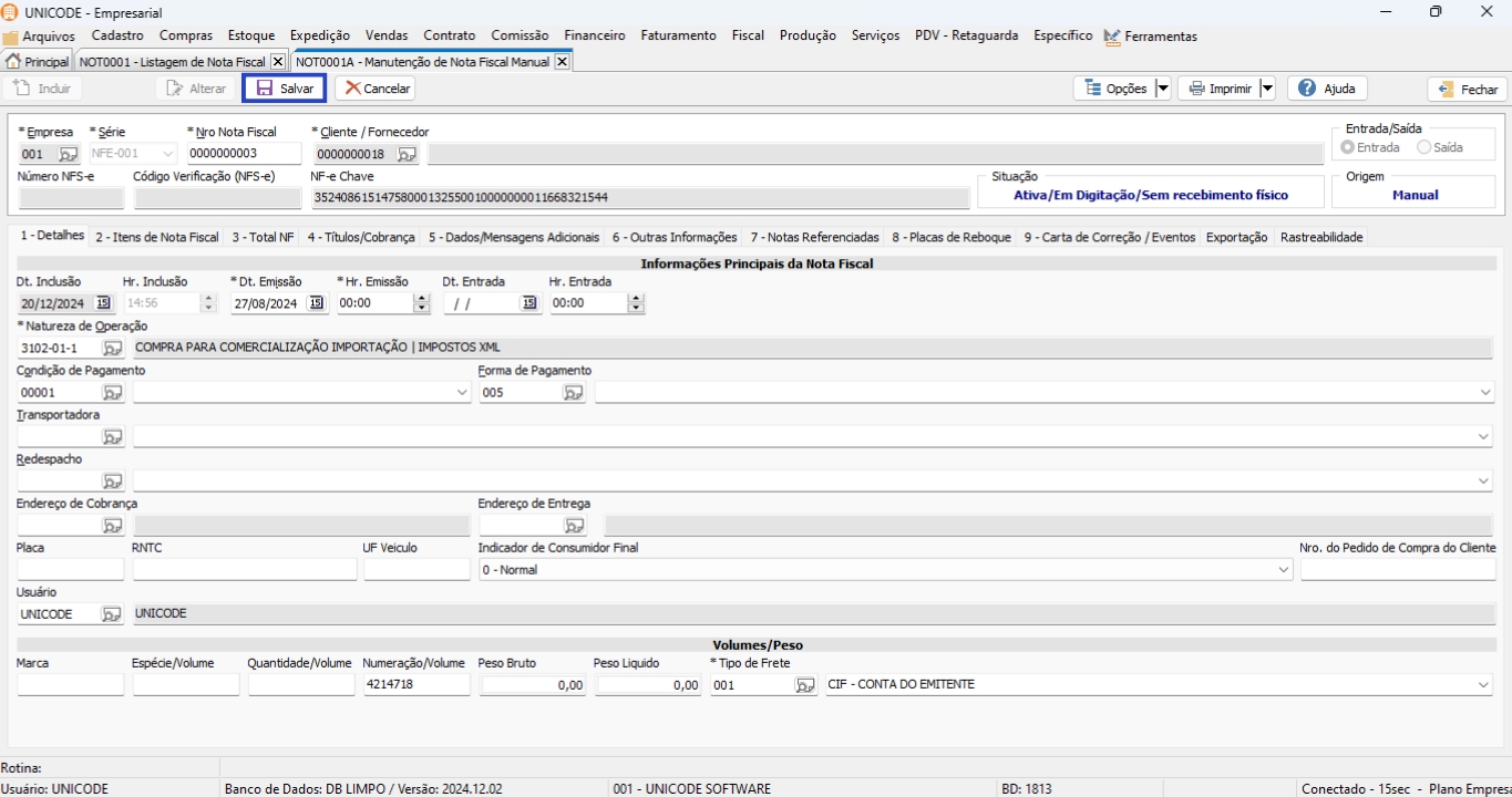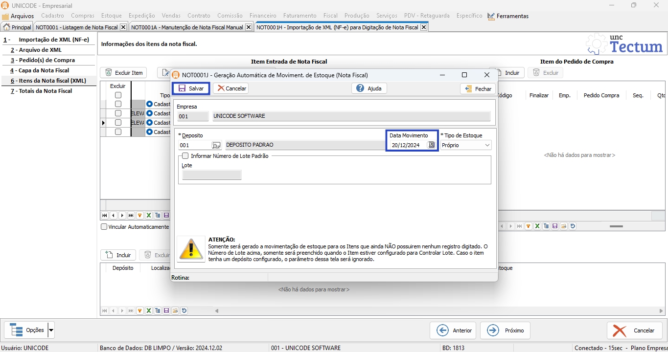 10. Valide a Data de Movimento e clique em “Salvar”;