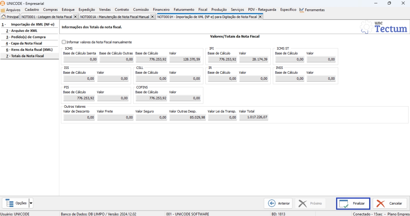 11. Confirme o valor total da nota fiscal, se estiver correto, clique em “Finalizar”;