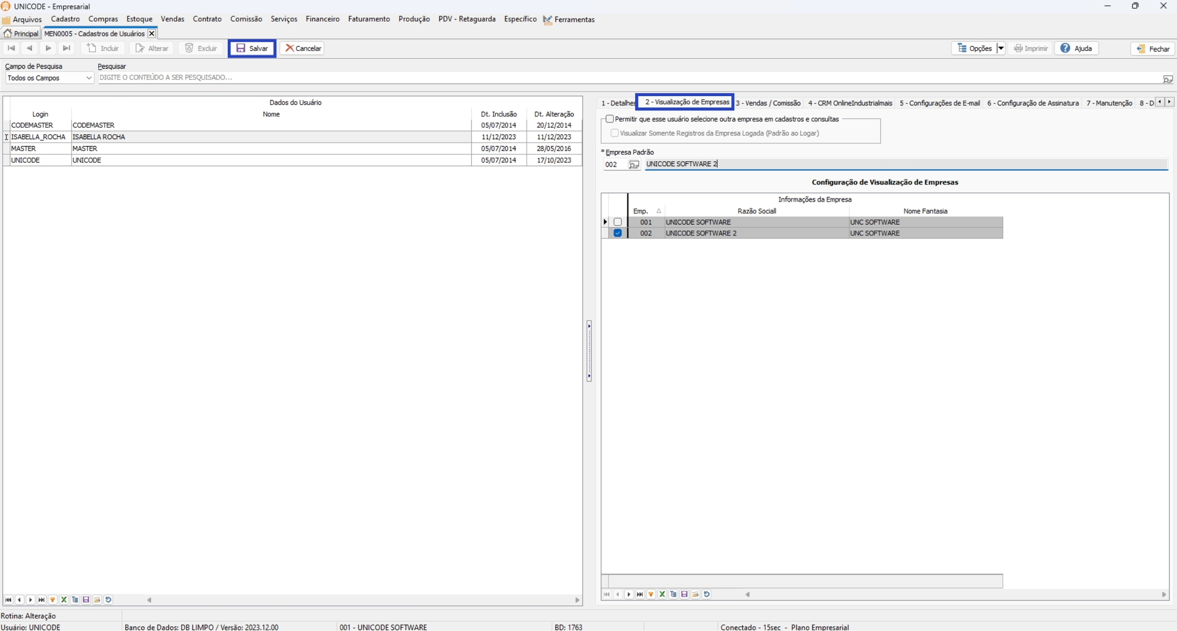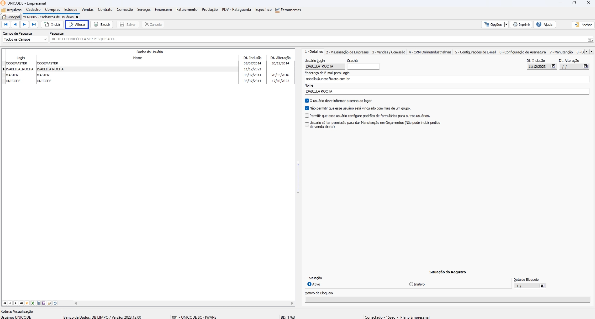 2. Localize e selecione o usuário desejado e clique em alterar;