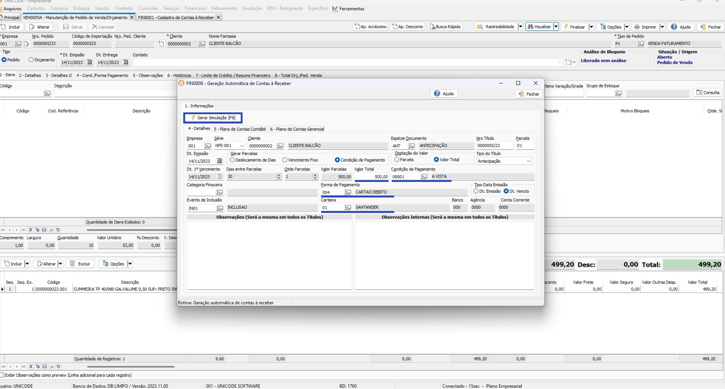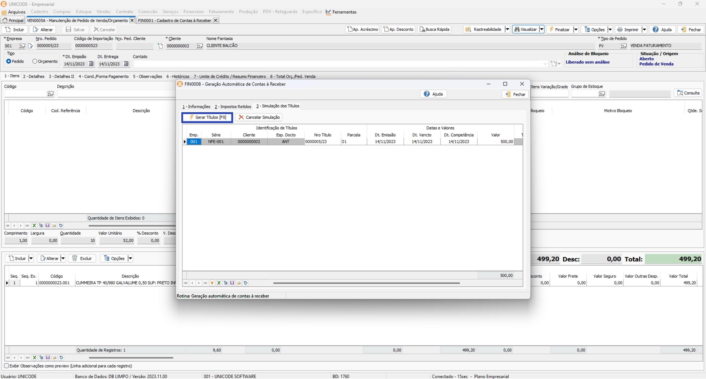 8. Caso a simulação esteja correta, clique em Gerar Títulos.