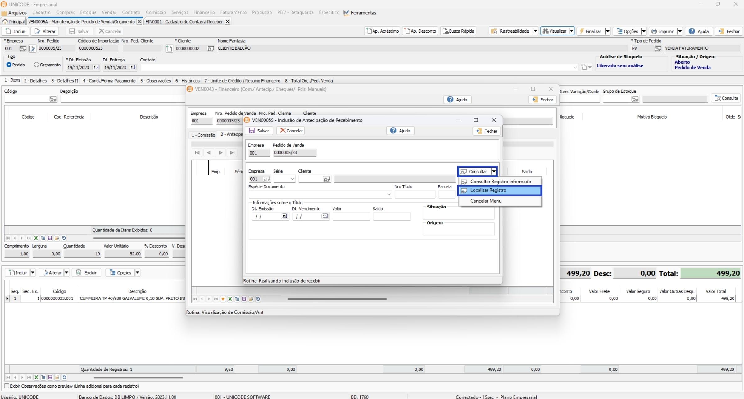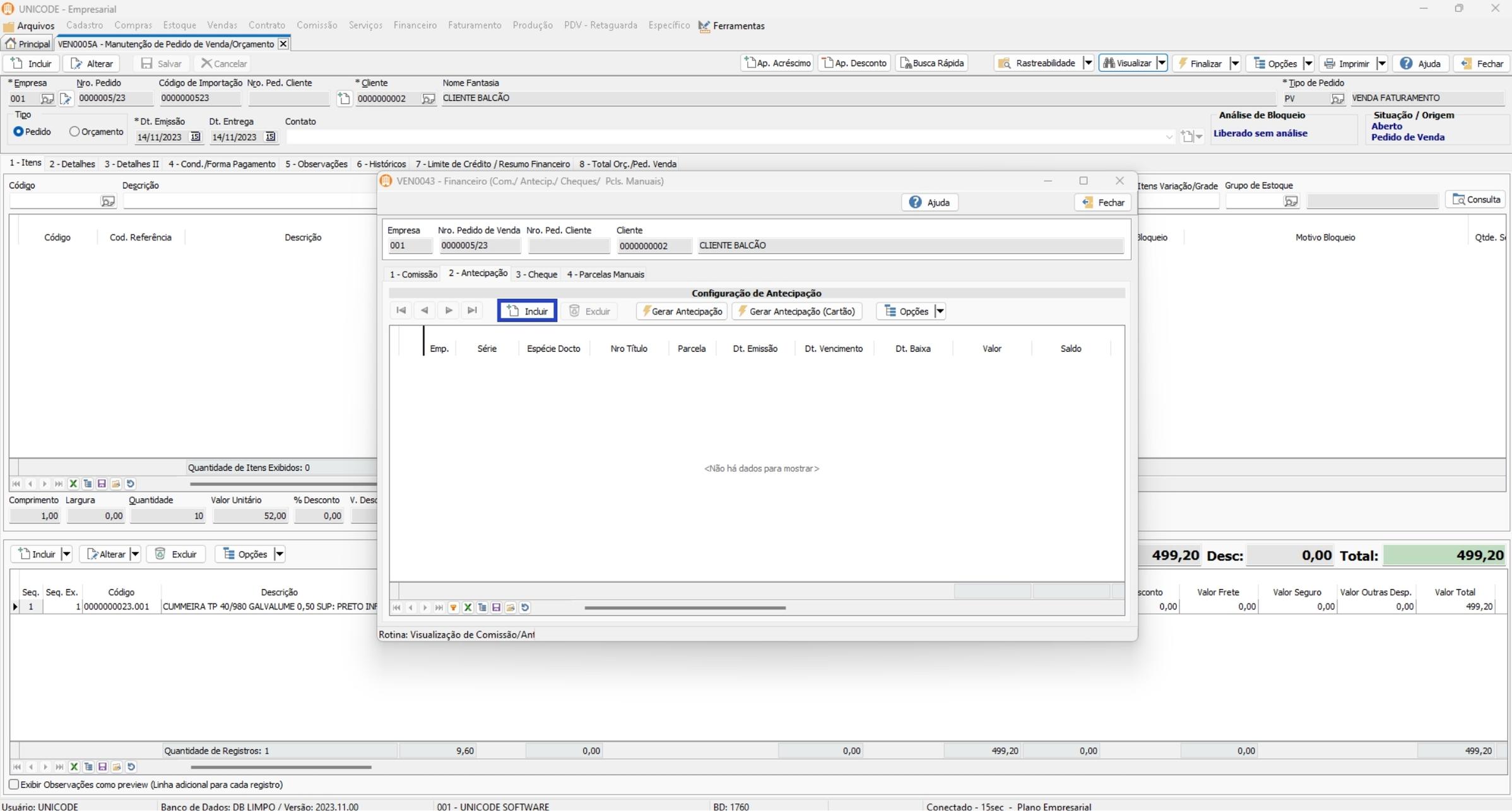 •  Incluir: Utilize essa opção quando o seu título de antecipação já exista no sistema, e você vincula-lo a venda;