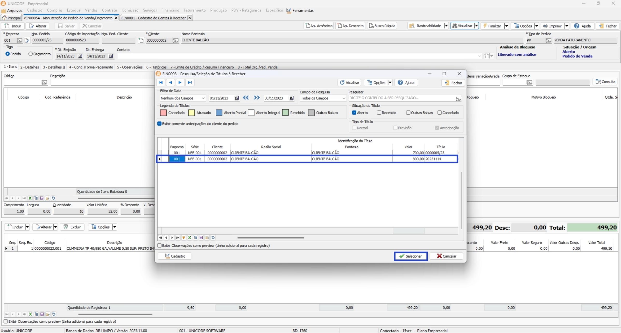 Como vincular um título de antecipação na venda?