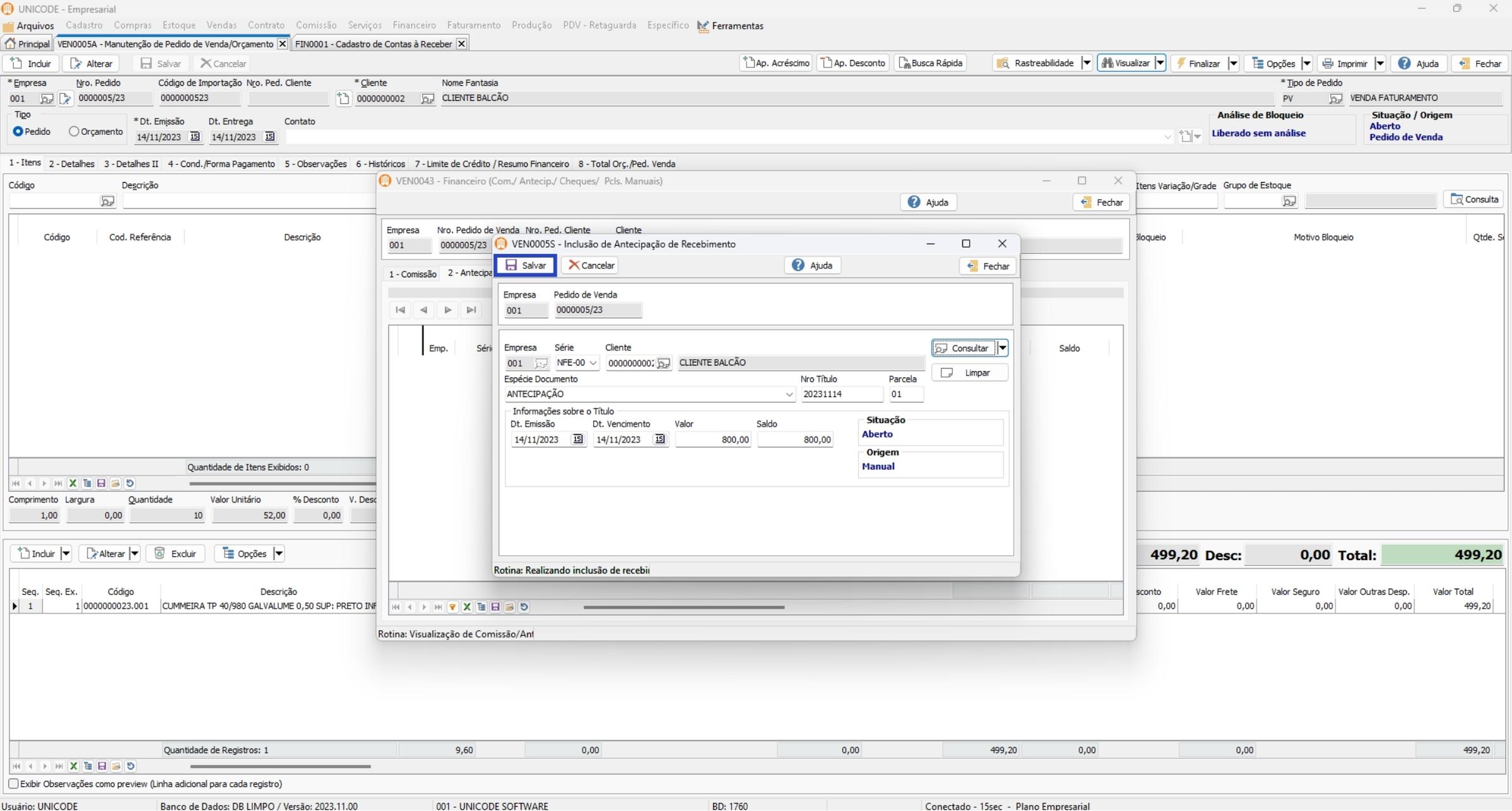 5. Para vincular na venda, clique em Salvar;