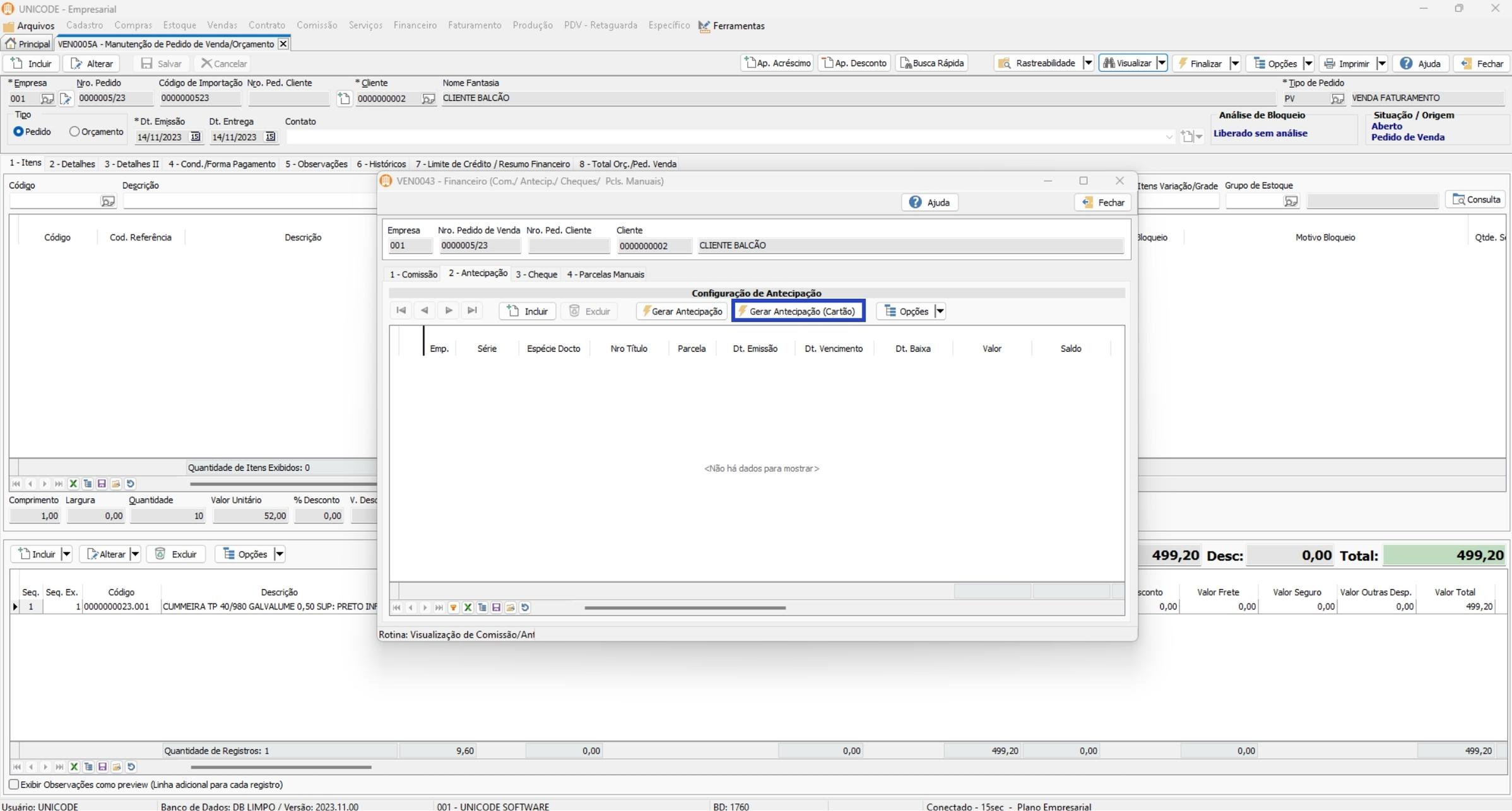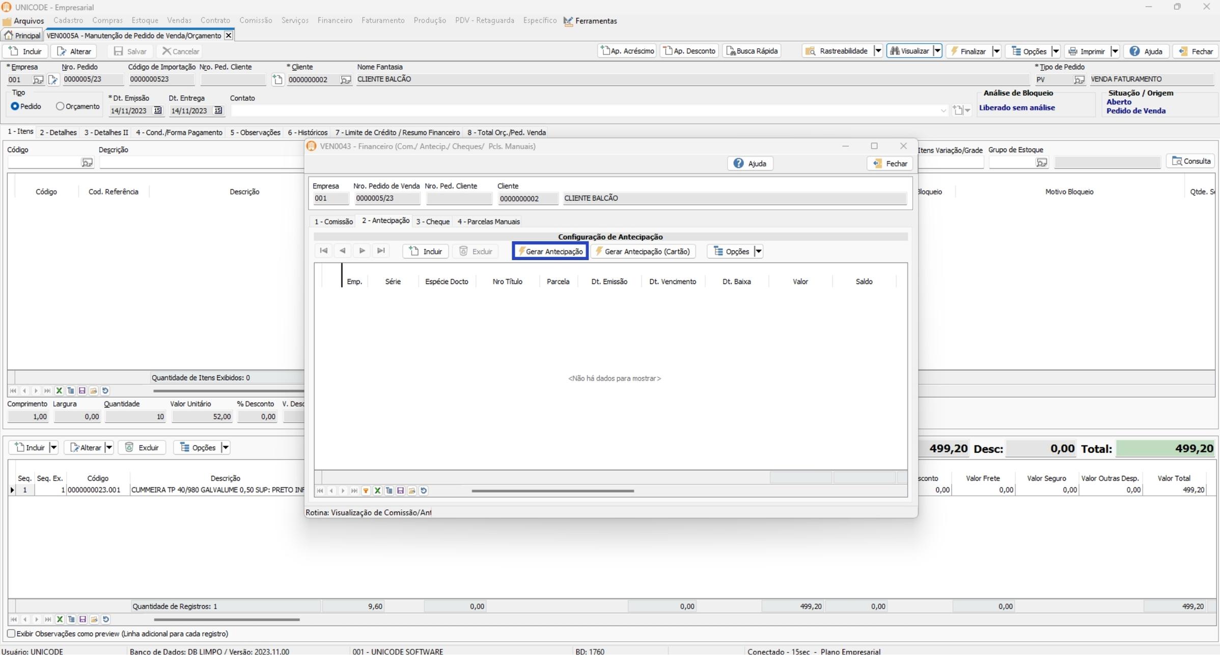 • Gerar Antecipação: Utilize essa opção quando ainda não há o título cadastrado no sistema.